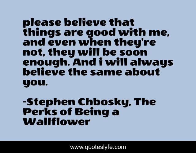 "Stephen Chbosky, The Perks of Being a Wallflower Quotes." Quoteslyfe.com, 2025. Sun. 07 Dec. 2025. <https://www.quoteslyfe.com/quote/please-believe-that-things-are-good-with-1913>.