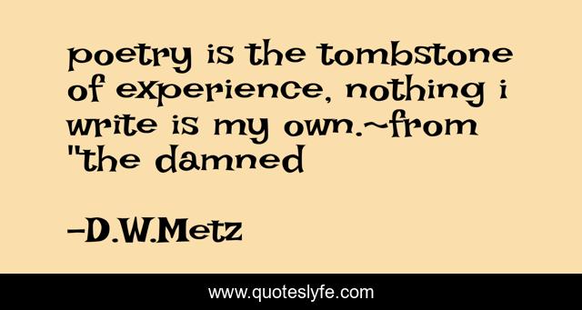 This page presents the quote "poetry is the tombstone of experience, nothing i write is my own.~from "the damned". Author of this quote is D.W.Metz. .