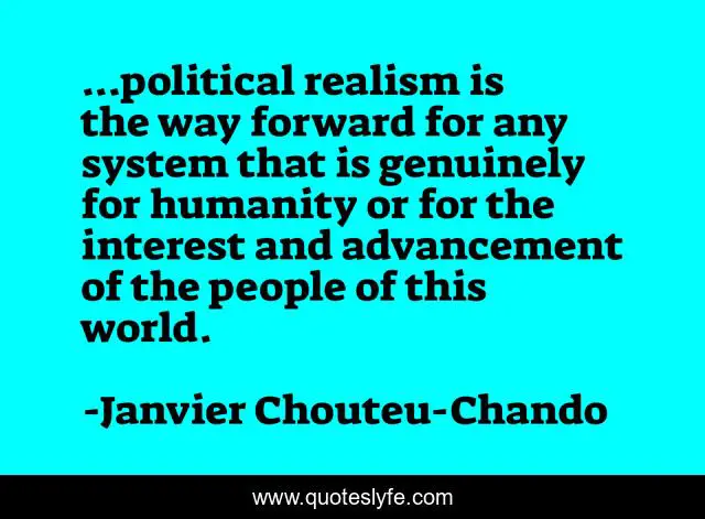 This page presents the quote "...political realism is the way forward for any system that is genuinely for humanity or for the interest and advancement of the people of this world.". Author of this quote is Janvier Chouteu-Chando. This quote is about life, positive, motivational, confidence, wisdom, optimistic, inspirational, enthusiasm, happiness,.