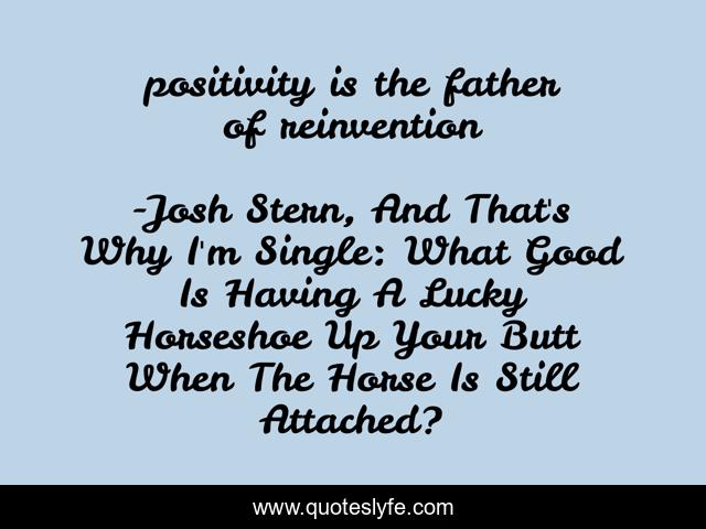 "Josh Stern, And That's Why I'm Single: What Good Is Having A Lucky Horseshoe Up Your Butt When The Horse Is Still Attached? Quotes." Quoteslyfe.com, 2025. Tue. 09 Dec. 2025. <https://www.quoteslyfe.com/quote/positivity-is-the-father-of-reinvention-199936>.