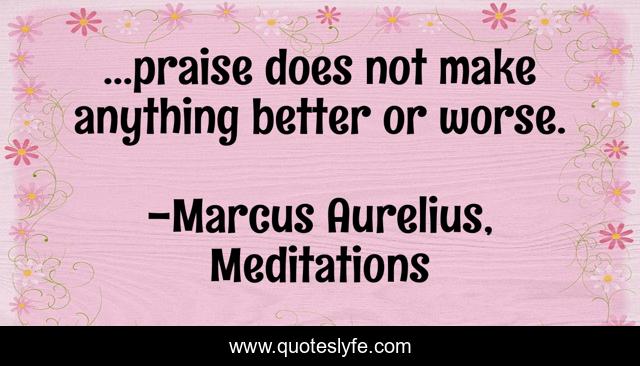 This page presents the quote "…praise does not make anything better or worse.". Author of this quote is Marcus Aurelius, Meditations. This quote is about philosophy-of-life, philosophy, praise, philosophy-of-people,.