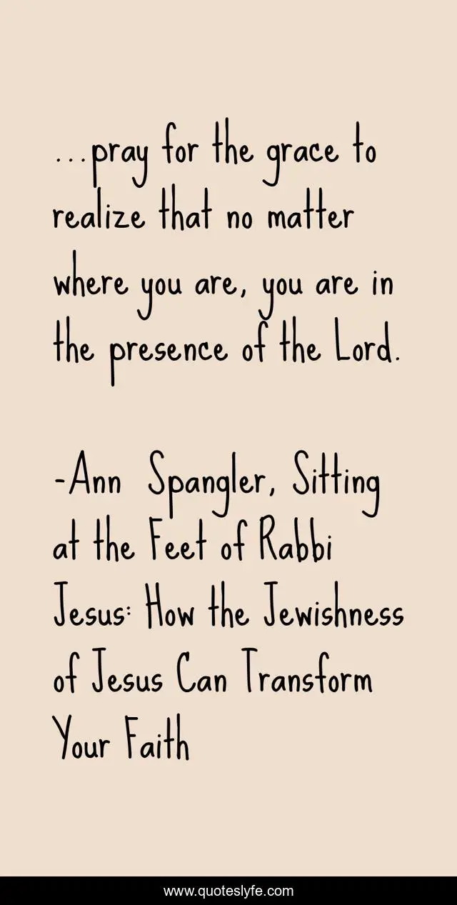 "Ann Spangler, Sitting at the Feet of Rabbi Jesus: How the Jewishness of Jesus Can Transform Your Faith Quotes." Quoteslyfe.com, 2025. Sat. 06 Dec. 2025. <https://www.quoteslyfe.com/quote/pray-for-the-grace-to-realize-that-114518>.