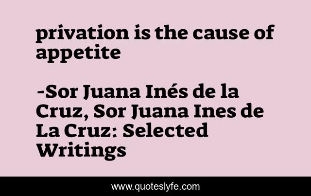 "Sor Juana Inés de la Cruz, Sor Juana Ines de La Cruz: Selected Writings Quotes." Quoteslyfe.com, 2025. Tue. 09 Dec. 2025. <https://www.quoteslyfe.com/quote/privation-is-the-cause-of-appetite-239113>.