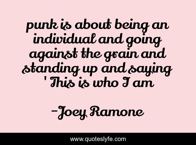 This page presents the quote "punk is about being an individual and going against the grain and standing up and saying 'This is who I am". Author of this quote is Joey Ramone. This quote is about individuality, punk, music, rock-and-roll, beliefs, individualism,.