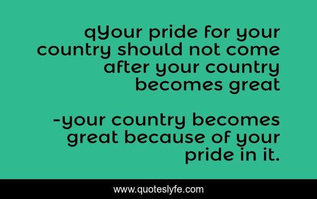 This page presents the quote "qYour pride for your country should not come after your country becomes great". Author of this quote is your country becomes great because of your pride in it.. This quote is about wealth for all africans: how every african can live the life of their dreams, idowu koyenikan,.
