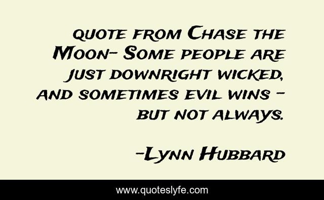 This page presents the quote "quote from Chase the Moon- Some people are just downright wicked, and sometimes evil wins - but not always.". Author of this quote is Lynn Hubbard. This quote is about evil, hope, winning,.