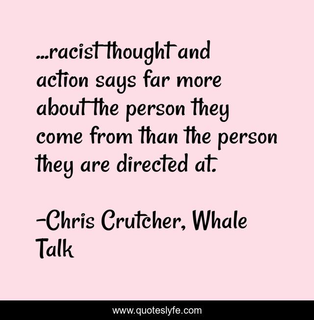 This page presents the quote "...racist thought and action says far more about the person they come from than the person they are directed at.". Author of this quote is Chris Crutcher, Whale Talk. This quote is about prejudice, bigotry, small-mindedness, racism,.