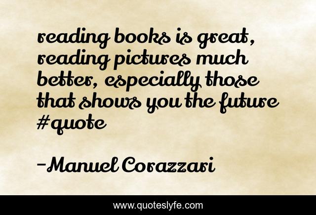 This page presents the quote "reading books is great, reading pictures much better, especially those that shows you the future #quote". Author of this quote is Manuel Corazzari. This quote is about success, future, books, goals, reading, vision,.