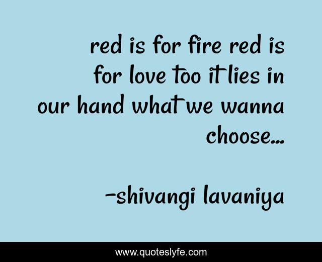 This page presents the quote "red is for fire red is for love too it lies in our hand what we wanna choose...". Author of this quote is shivangi lavaniya. This quote is about fire, love, red, affection,.