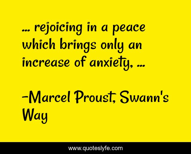 This page presents the quote "... rejoicing in a peace which brings only an increase of anxiety, ...". Author of this quote is Marcel Proust, Swann's Way. This quote is about society, anxiety,.
