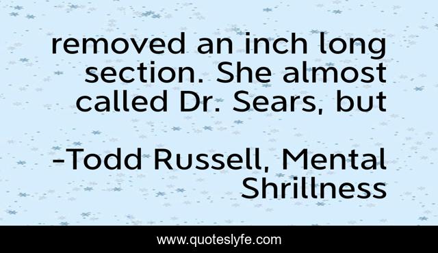"Todd Russell, Mental Shrillness Quotes." Quoteslyfe.com, 2025. Fri. 05 Dec. 2025. <https://www.quoteslyfe.com/quote/removed-an-inch-long-section-She-almost-218951>.