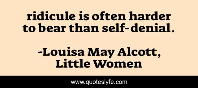 This page presents the quote "ridicule is often harder to bear than self-denial.". Author of this quote is Louisa May Alcott, Little Women. This quote is about patience, ridicule, self-denial,.