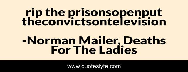 "Norman Mailer, Deaths For The Ladies Quotes." Quoteslyfe.com, 2025. Mon. 08 Dec. 2025. <https://www.quoteslyfe.com/quote/rip-the-prisonsopenput-theconvictsontelevision-191845>.