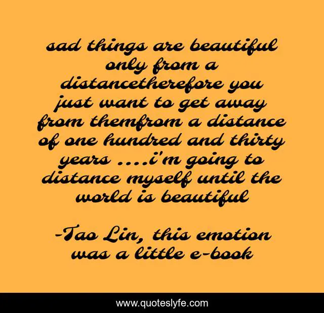 "Tao Lin, this emotion was a little e-book Quotes." Quoteslyfe.com, 2025. Fri. 05 Dec. 2025. <https://www.quoteslyfe.com/quote/sad-things-are-beautiful-only-from-a-60786>.