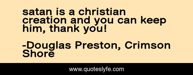 This page presents the quote "satan is a christian creation and you can keep him, thank you!". Author of this quote is Douglas Preston, Crimson Shore. .