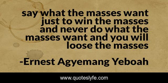 "Ernest Agyemang Yeboah Quotes." Quoteslyfe.com, 2025. Fri. 05 Dec. 2025. <https://www.quoteslyfe.com/quote/say-what-the-masses-want-just-to-119501>.