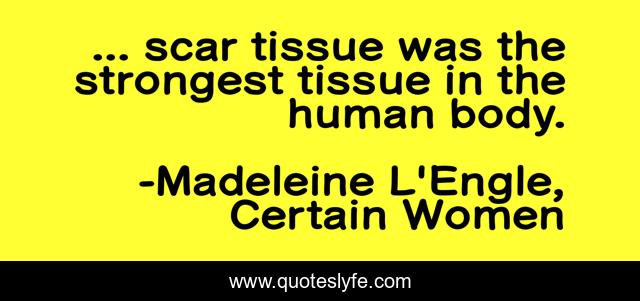 "Madeleine L'Engle, Certain Women Quotes." Quoteslyfe.com, 2025. Sat. 06 Dec. 2025. <https://www.quoteslyfe.com/quote/scar-tissue-was-the-strongest-tissue-in-104892>.