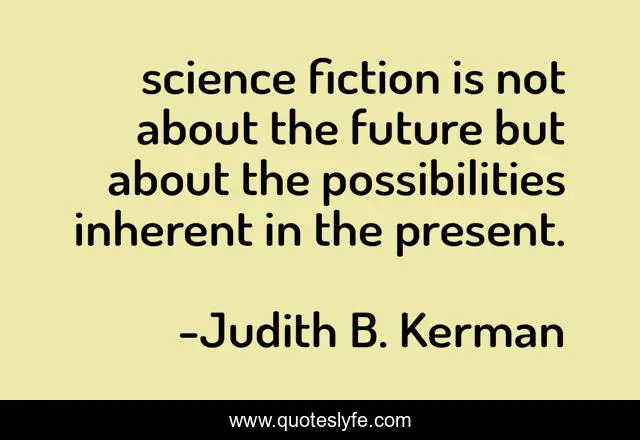 This page presents the quote "science fiction is not about the future but about the possibilities inherent in the present.". Author of this quote is Judith B. Kerman. .