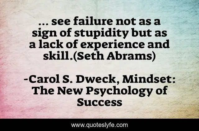 This page presents the quote "… see failure not as a sign of stupidity but as a lack of experience and skill.(Seth Abrams)". Author of this quote is Carol S. Dweck, Mindset: The New Psychology of Success. .