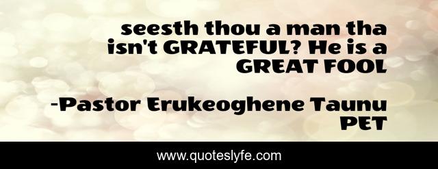 This page presents the quote "seesth thou a man tha isn't GRATEFUL? He is a GREAT FOOL". Author of this quote is Pastor Erukeoghene Taunu PET. This quote is about gratitude, ingratitude, thanksgiving,.