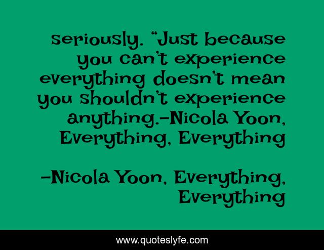 This page presents the quote "seriously. “Just because you can’t experience everything doesn’t mean you shouldn’t experience anything.-Nicola Yoon, Everything, Everything". Author of this quote is Nicola Yoon, Everything, Everything. This quote is about nicola-yoon, everything-everything, book, love, affection,.