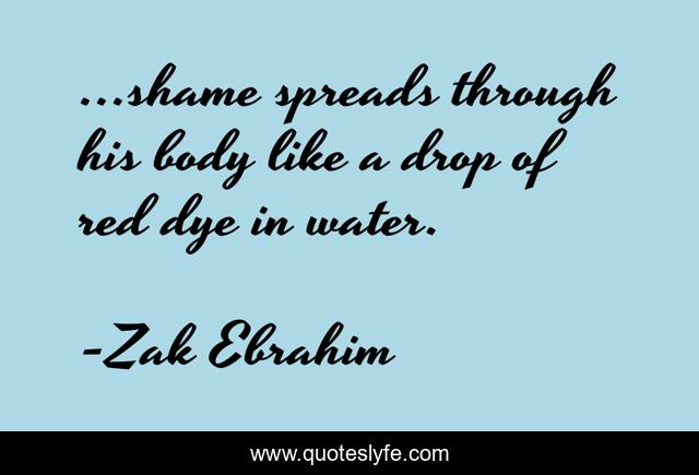 This page presents the quote "...shame spreads through his body like a drop of red dye in water.". Author of this quote is Zak Ebrahim. This quote is about shame, simile,.