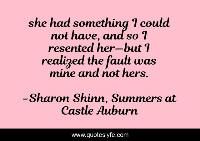 This page presents the quote "she had something I could not have, and so I resented her—but I realized the fault was mine and not hers.". Author of this quote is Sharon Shinn, Summers at Castle Auburn. This quote is about jealousy, self-control,.