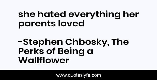 "Stephen Chbosky, The Perks of Being a Wallflower Quotes." Quoteslyfe.com, 2025. Tue. 09 Dec. 2025. <https://www.quoteslyfe.com/quote/she-hated-everything-her-parents-loved-163635>.