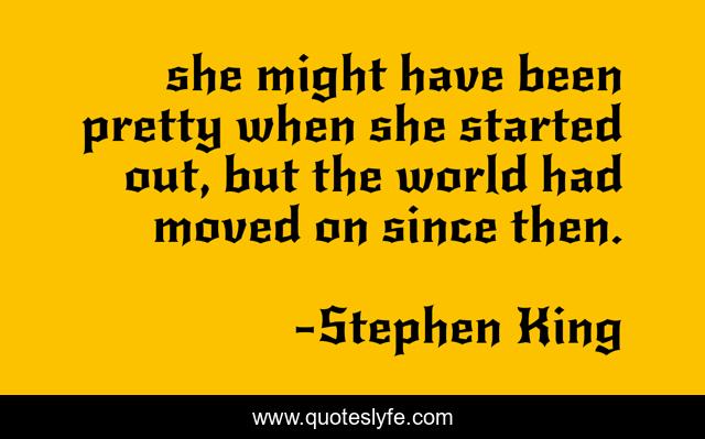 This page presents the quote "she might have been pretty when she started out, but the world had moved on since then.". Author of this quote is Stephen King. This quote is about beauty, time,.