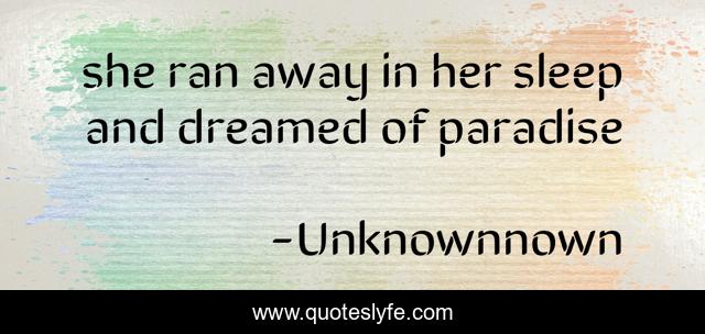 This page presents the quote "she ran away in her sleep and dreamed of paradise". Author of this quote is Unknownnown. This quote is about sleep, paradise,.
