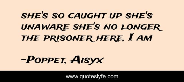 This page presents the quote "she's so caught up she's unaware she's no longer the prisoner here, I am". Author of this quote is Poppet, Aisyx. This quote is about paranormal-romance, vampire-romance,.