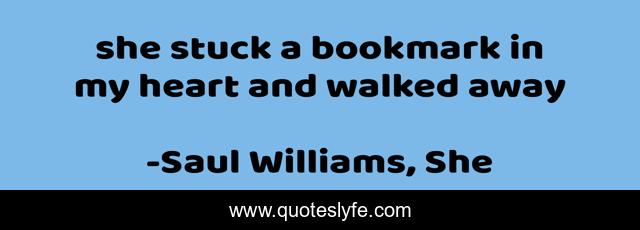 This page presents the quote "she stuck a bookmark in my heart and walked away". Author of this quote is Saul Williams, She. .