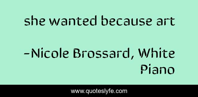 "Nicole Brossard, White Piano Quotes." Quoteslyfe.com, 2025. Sat. 06 Dec. 2025. <https://www.quoteslyfe.com/quote/she-wanted-because-art-158370>.