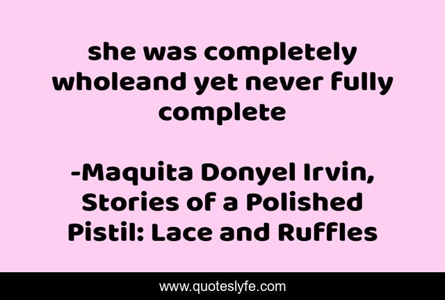 "Maquita Donyel Irvin, Stories of a Polished Pistil: Lace and Ruffles Quotes." Quoteslyfe.com, 2025. Mon. 08 Dec. 2025. <https://www.quoteslyfe.com/quote/she-was-completely-wholeand-yet-never-fully-19444>.