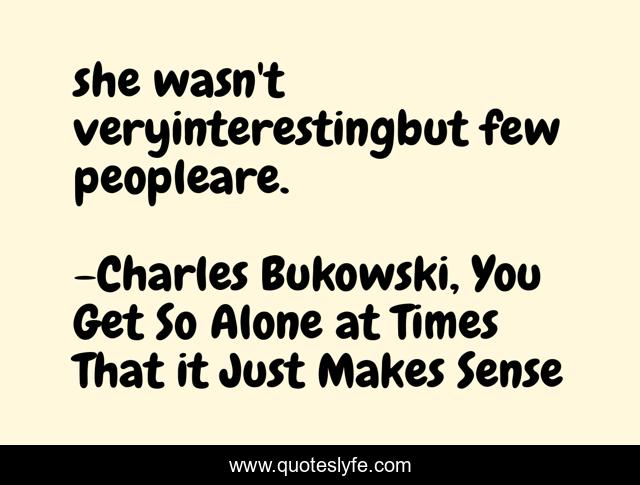 "Charles Bukowski, You Get So Alone at Times That it Just Makes Sense Quotes." Quoteslyfe.com, 2025. Tue. 09 Dec. 2025. <https://www.quoteslyfe.com/quote/she-wasn-t-veryinterestingbut-few-peopleare-102963>.