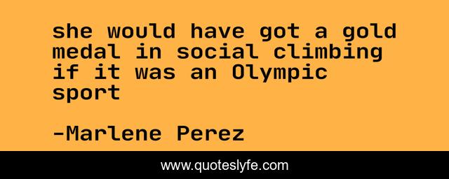 This page presents the quote "she would have got a gold medal in social climbing if it was an Olympic sport". Author of this quote is Marlene Perez. .