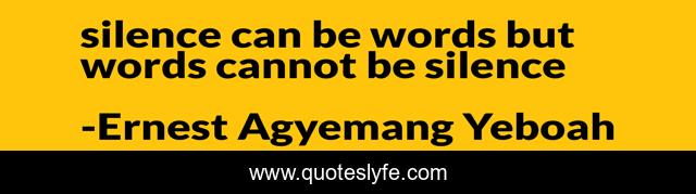 "Ernest Agyemang Yeboah Quotes." Quoteslyfe.com, 2025. Fri. 05 Dec. 2025. <https://www.quoteslyfe.com/quote/silence-can-be-words-but-words-cannot-113216>.