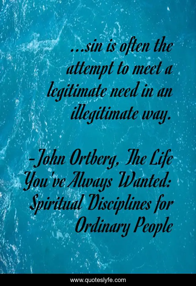 This page presents the quote "...sin is often the attempt to meet a legitimate need in an illegitimate way.". Author of this quote is John Ortberg, The Life You've Always Wanted: Spiritual Disciplines for Ordinary People. .