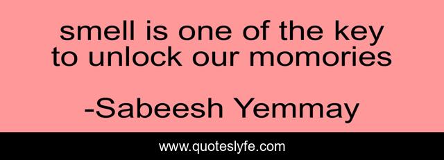 This page presents the quote "smell is one of the key to unlock our momories". Author of this quote is Sabeesh Yemmay. .