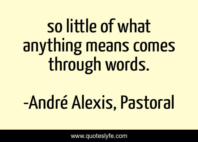 This page presents the quote "so little of what anything means comes through words.". Author of this quote is André Alexis, Pastoral. This quote is about stories, words, writing,.