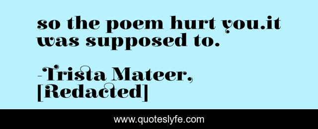 "Trista Mateer, [Redacted] Quotes." Quoteslyfe.com, 2025. Mon. 08 Dec. 2025. <https://www.quoteslyfe.com/quote/so-the-poem-hurt-you-it-was-158187>.