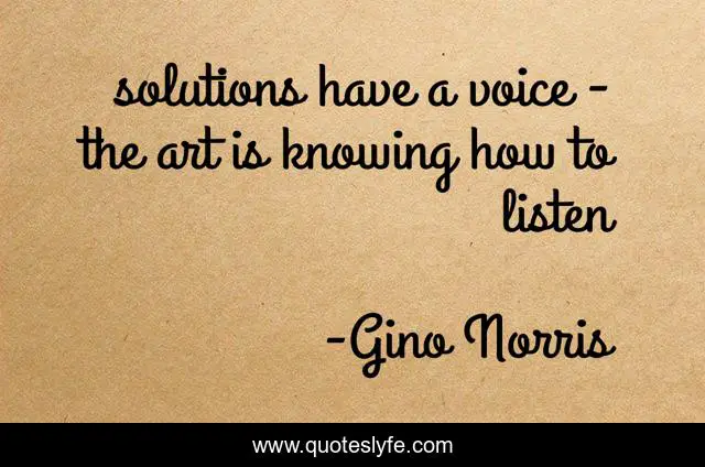 This page presents the quote "solutions have a voice - the art is knowing how to listen". Author of this quote is Gino Norris. This quote is about voice-of-listening, options, solutions, listening, finding-solutions,.