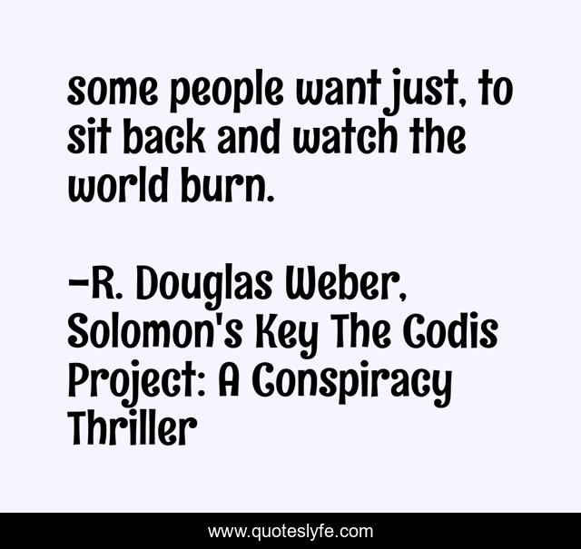 This page presents the quote "some people want just, to sit back and watch the world burn.". Author of this quote is R. Douglas Weber, Solomon's Key The Codis Project: A Conspiracy Thriller. .