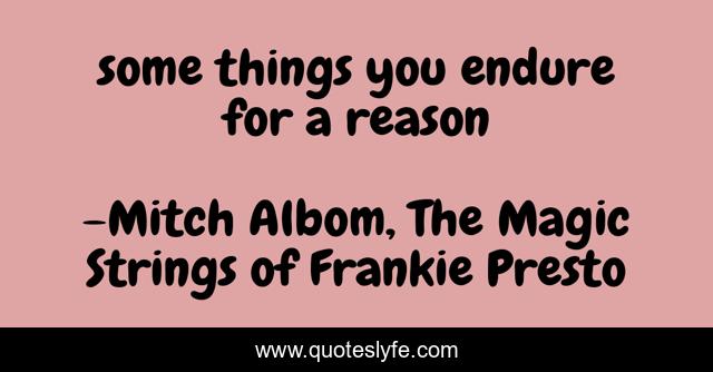 "Mitch Albom, The Magic Strings of Frankie Presto Quotes." Quoteslyfe.com, 2025. Fri. 05 Dec. 2025. <https://www.quoteslyfe.com/quote/some-things-you-endure-for-a-reason-189714>.