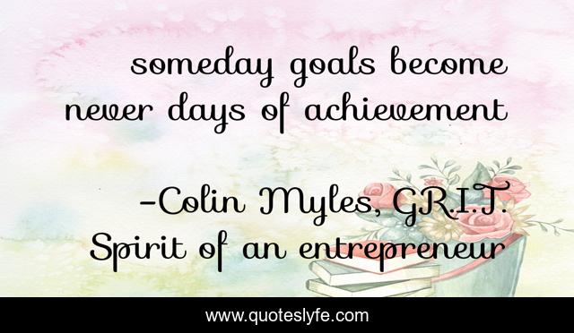 "Colin Myles, G.R.I.T. Spirit of an entrepreneur Quotes." Quoteslyfe.com, 2025. Sat. 06 Dec. 2025. <https://www.quoteslyfe.com/quote/someday-goals-become-never-days-of-achievement-204153>.
