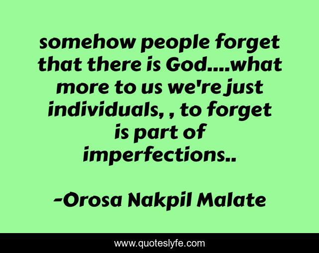 This page presents the quote "somehow people forget that there is God....what more to us we're just individuals, , to forget is part of imperfections..". Author of this quote is Orosa Nakpil Malate. This quote is about humor, life-lessons,.
