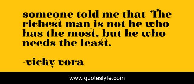 This page presents the quote "someone told me that "The richest man is not he who has the most, but he who needs the least.". Author of this quote is vicky vora. .
