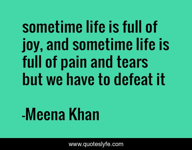 This page presents the quote "sometime life is full of joy, and sometime life is full of pain and tears but we have to defeat it". Author of this quote is Meena Khan. This quote is about faith, life, time,.