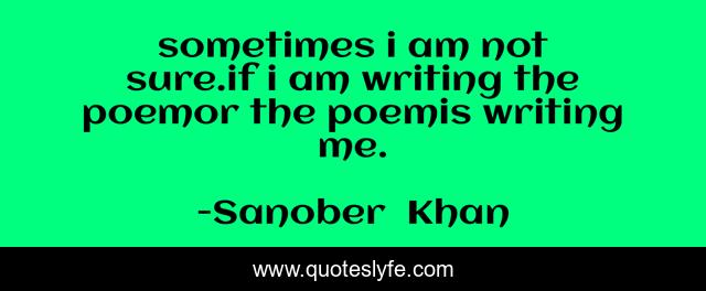 This page presents the quote "sometimes i am not sure.if i am writing the poemor the poemis writing me.". Author of this quote is Sanober Khan. This quote is about art, indian-authors, poetry, writing, pen, poetry-love, poetry-writing,.