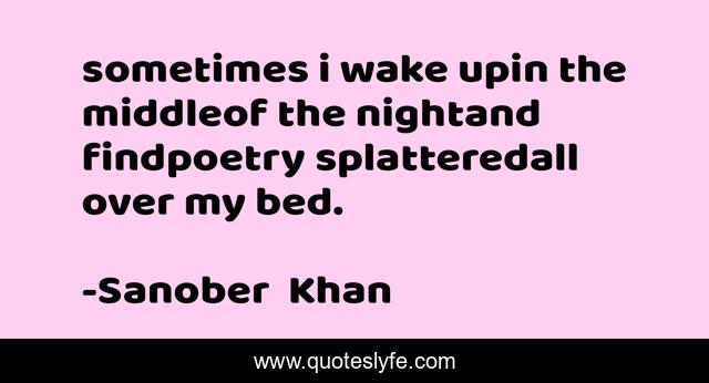 This page presents the quote "sometimes i wake upin the middleof the nightand findpoetry splatteredall over my bed.". Author of this quote is Sanober Khan. This quote is about night, writing-life, indian-authors, poetry, muse, writing, night-time, writers, bed,.